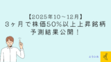 さて、本記事では、3ヶ月で株価が50%以上上昇する銘柄を特定するAIの予測結果(2025年7月~9月版)を公開していきました!